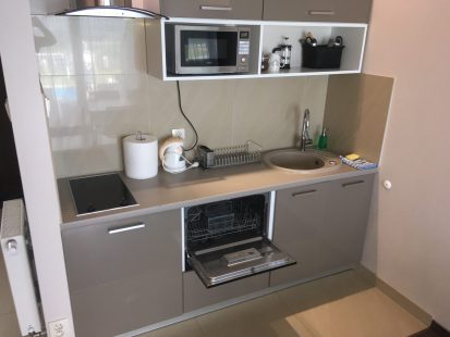 Wyposażenie apartamentu: telewizor z płaskiem ekranem typu smart, telewizja cyfrowa naziemna, pościel, ręczniki od ciała, rąk oraz stopka, internet WI-FI, suszarka do włosów, suszarka do ubrań. Łóżeczko turystyczne, rozkładamy za dodatkową opłatą 50 zł/doba, fotelik do karmienia oraz wanienka – za zapytanie.
